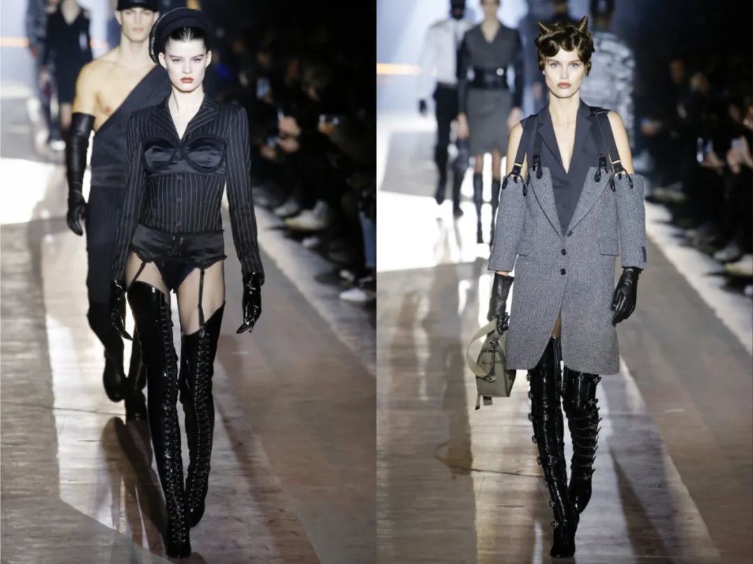 在无性别主义浪潮中莫斯奇诺(Moschino)2018秋冬男装彻底抛弃性别界限,选择以“女性施虐狂(Dominatrix)”视角展开两性设计。