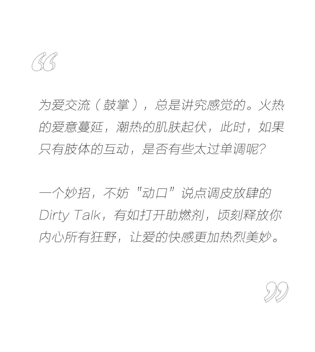 但后台还是有许多小伙伴表示和partner玩耍时,很想说些什么增添情趣,但往往大脑一片空白,支支吾吾半天而陷入沉默的尴尬。
